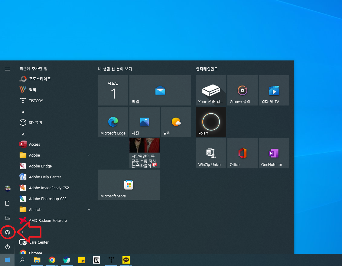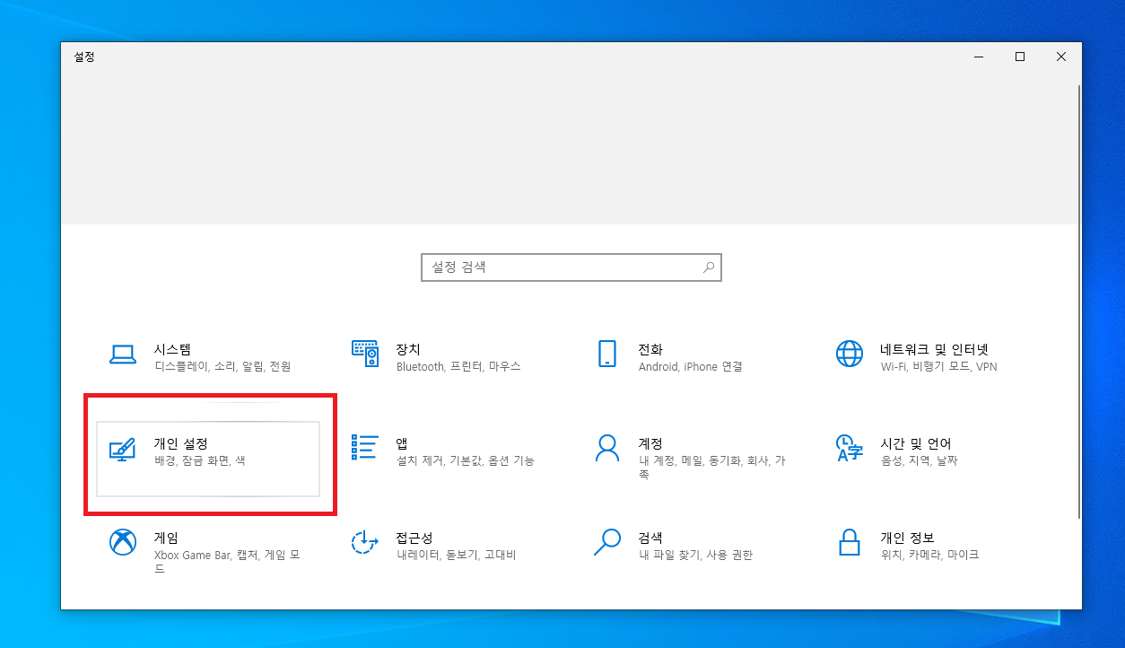 설정 메뉴에서 개인설정을 들어갑니다.