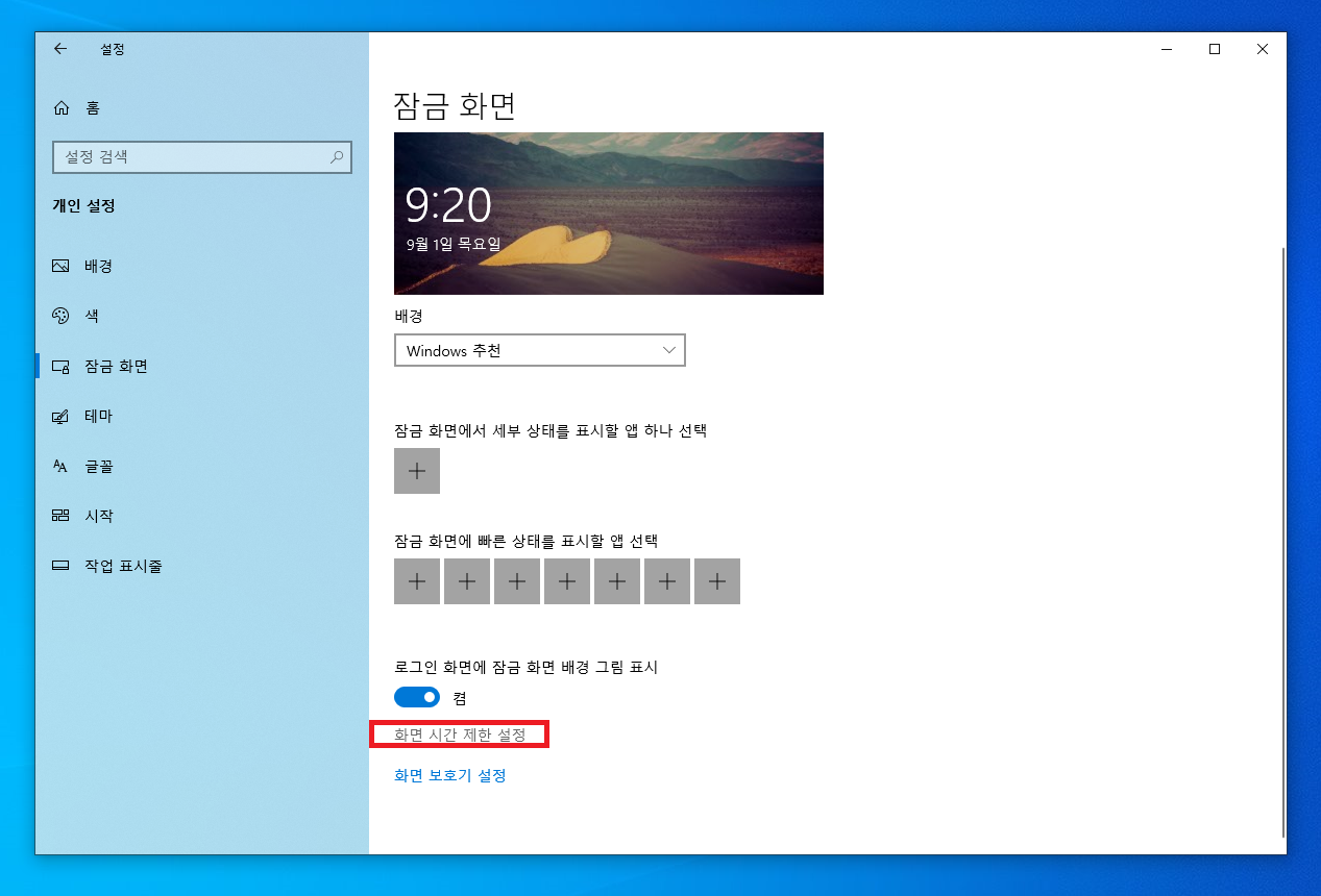 잠금화면에서 화면 시간제한 설정으로 들어갑니다.
